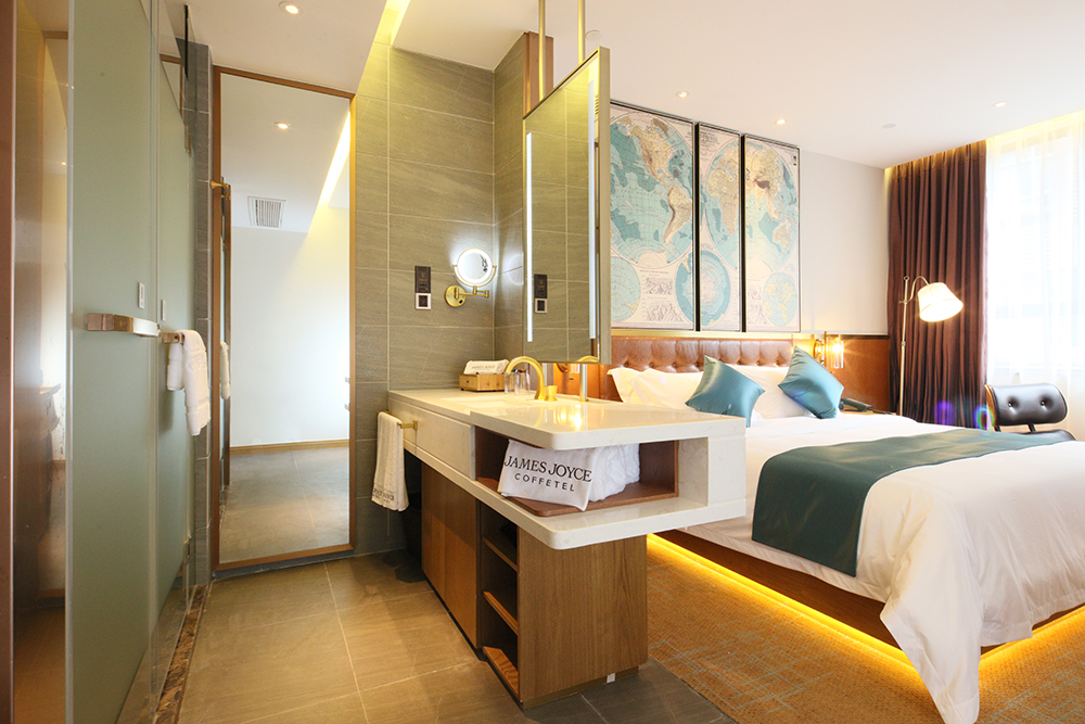 創(chuàng)造了24小時(shí)Café+Hotel+Galleria的Coffetel理念,融合咖啡廳、文化書(shū)吧、藝術(shù)品長(zhǎng)廊、商品展覽區(qū)、自助餐廳為一體的多功能配套酒店大堂,打造一個(gè)充滿(mǎn)社交、格調(diào)的氛圍,可以容納各種文化、各種思想的多元化場(chǎng)所,為商旅顧客營(yíng)造“旅途中的啡凡存在”體驗(yàn)。