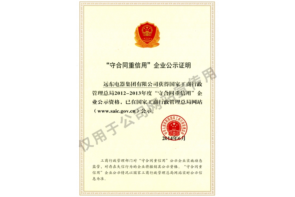 被國家工商行政管理總局授予“國家守合同重信用企業”。 | |