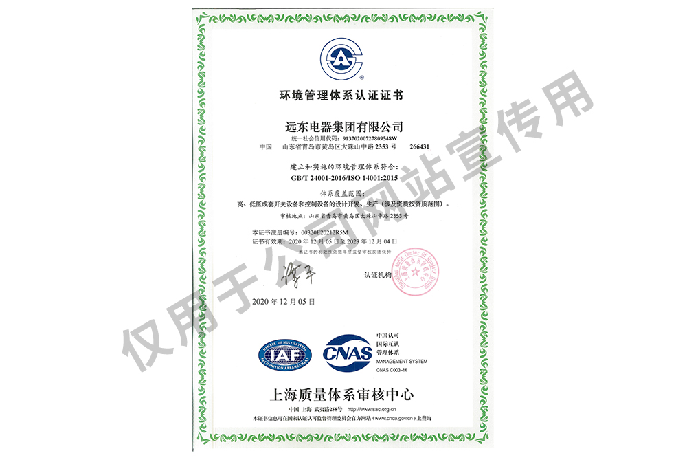 環(huán)境體系認(rèn)證證書
